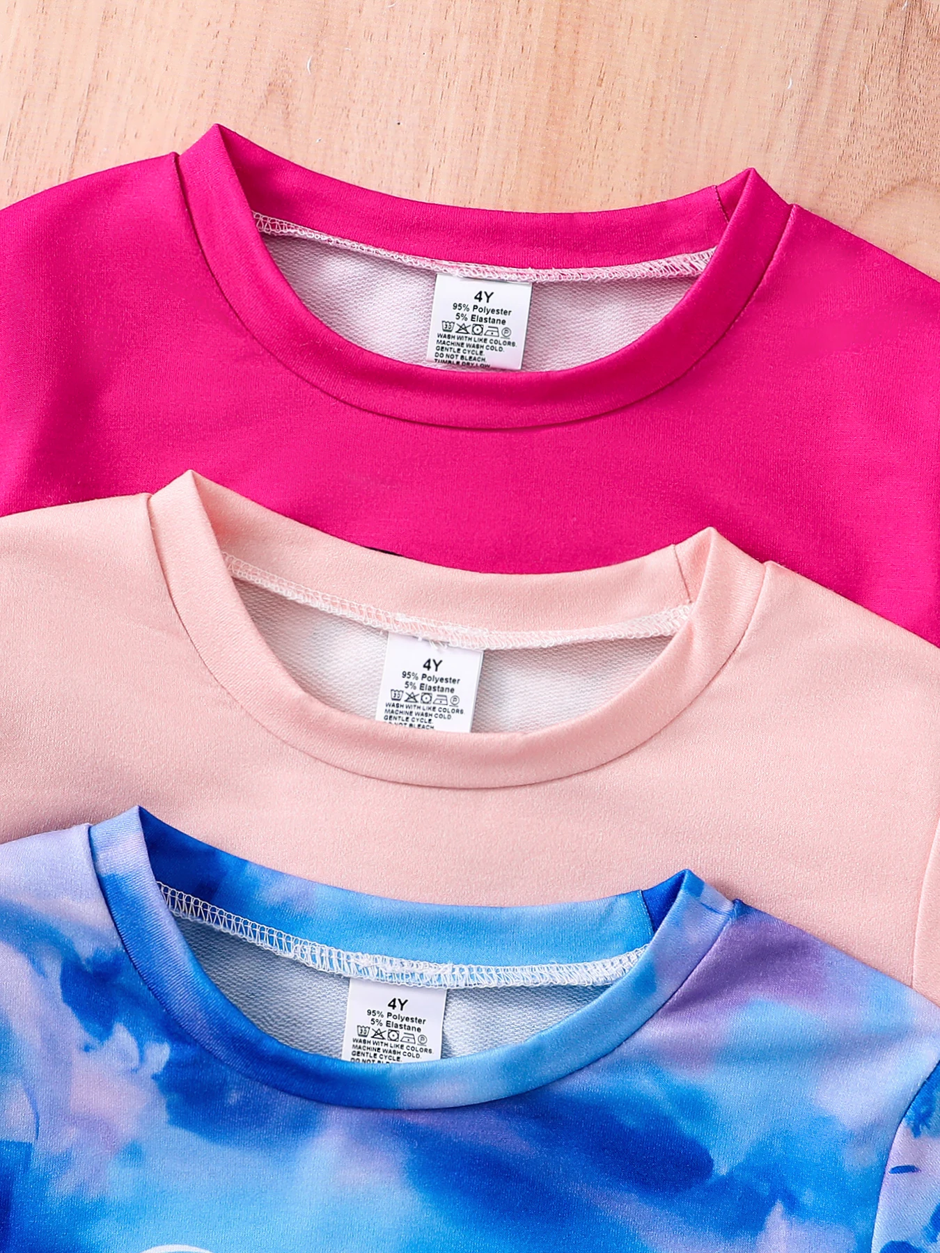 3 sets of spring and autumn children’s basic clothing sets with tie-dyed round-neck long-sleeved leggings for