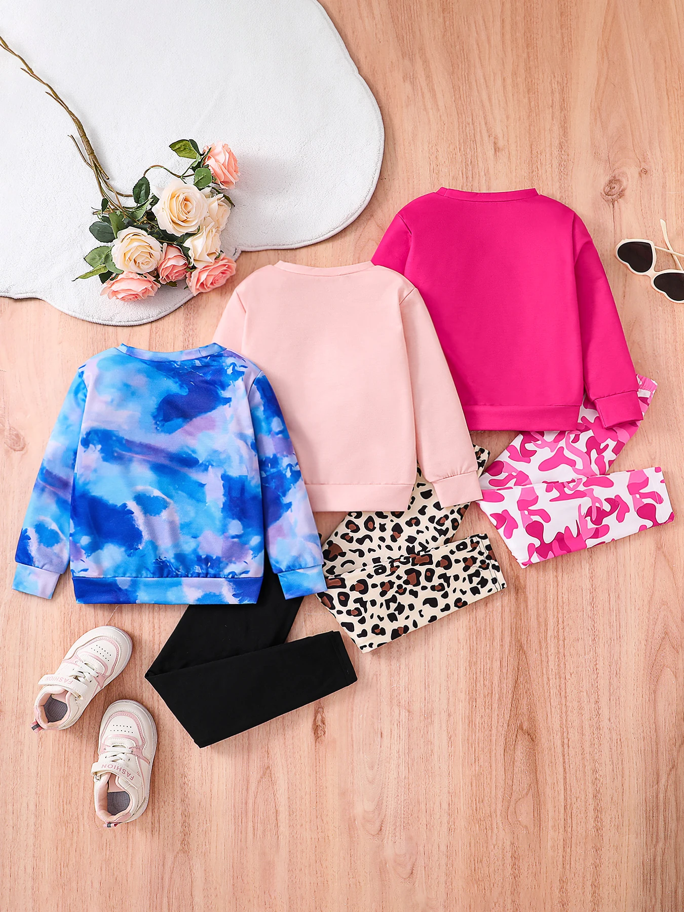 Be the first to review “3 sets of spring and autumn children’s basic clothing sets with tie-dyed round-neck long-sleeved leggings for”