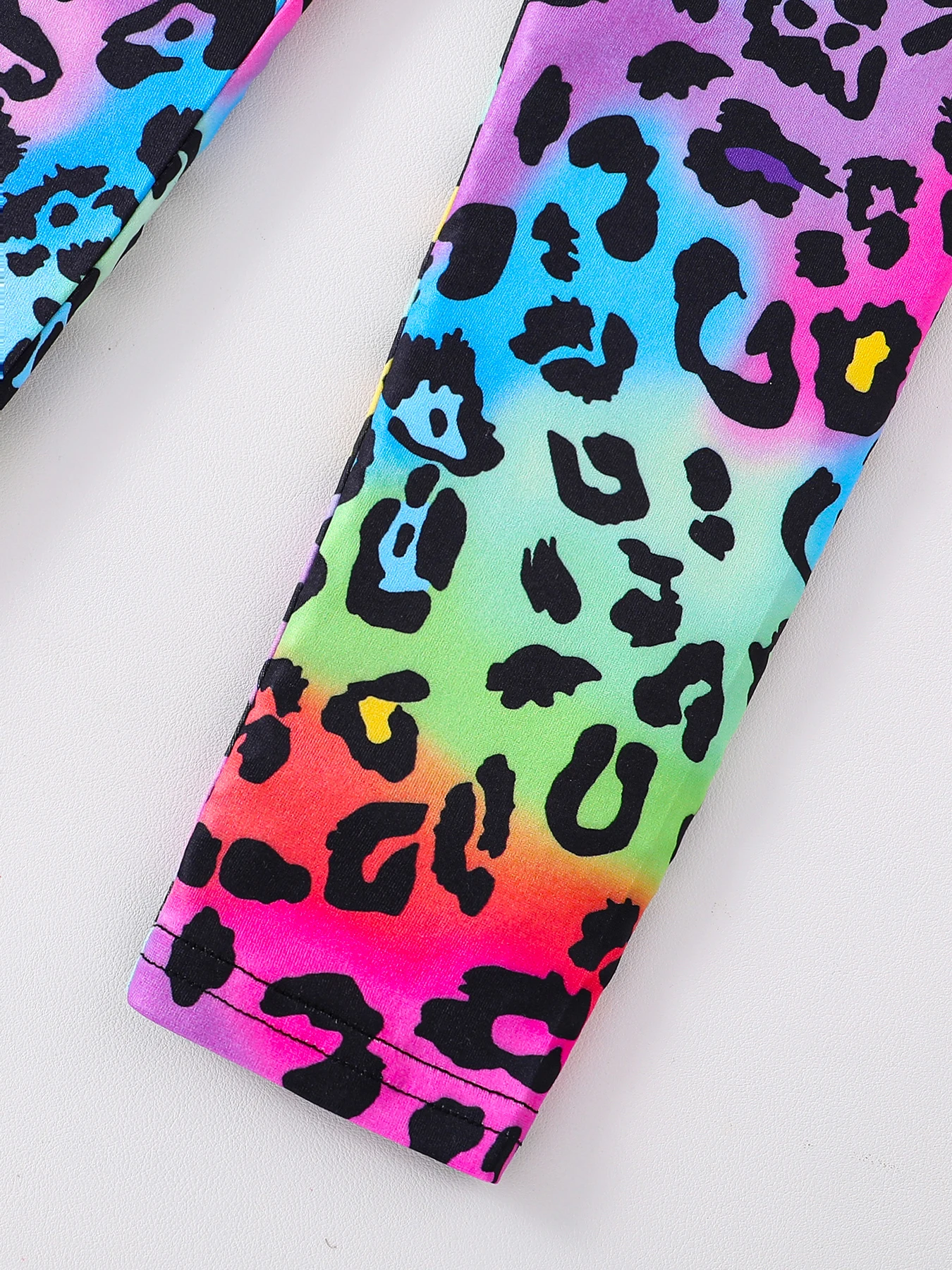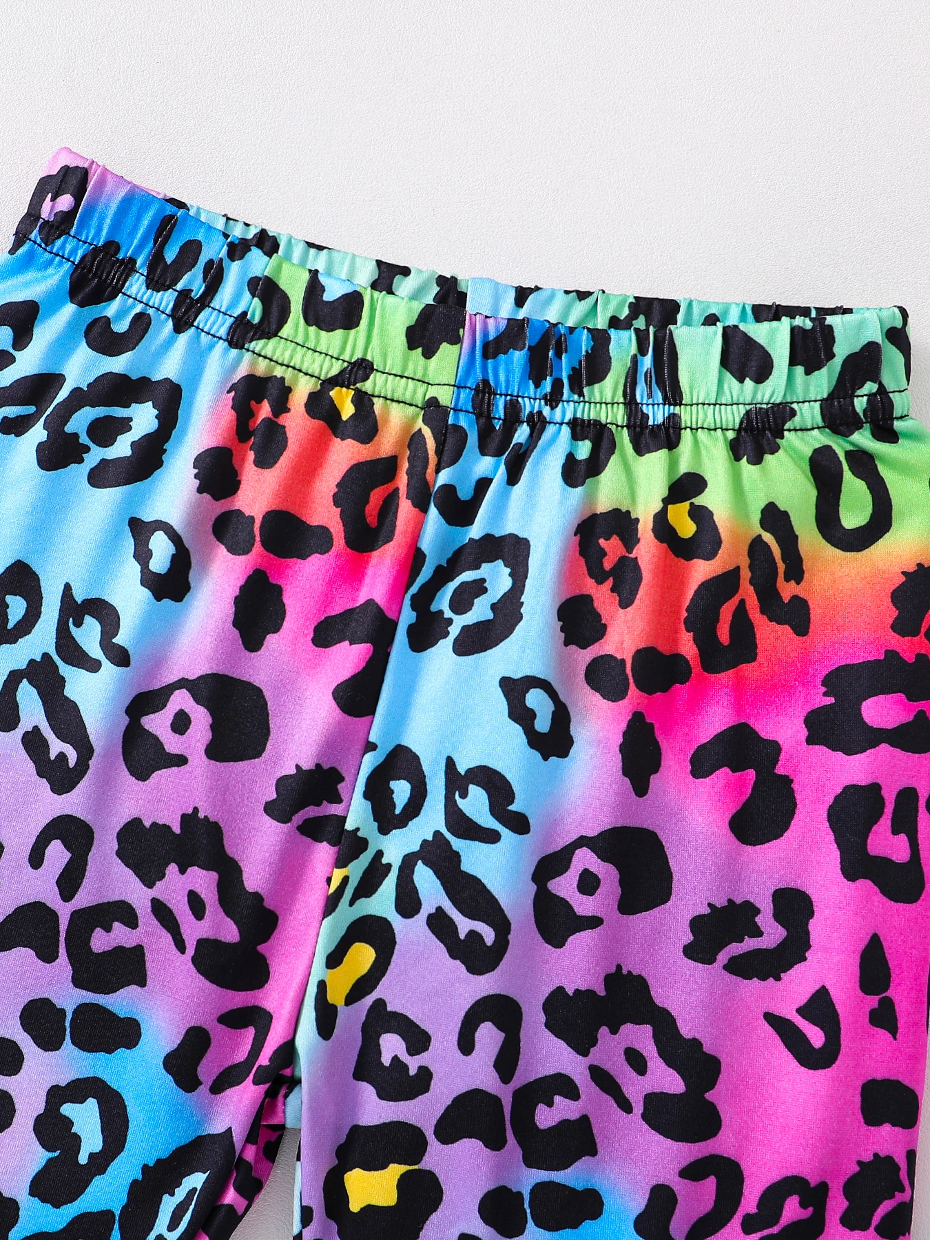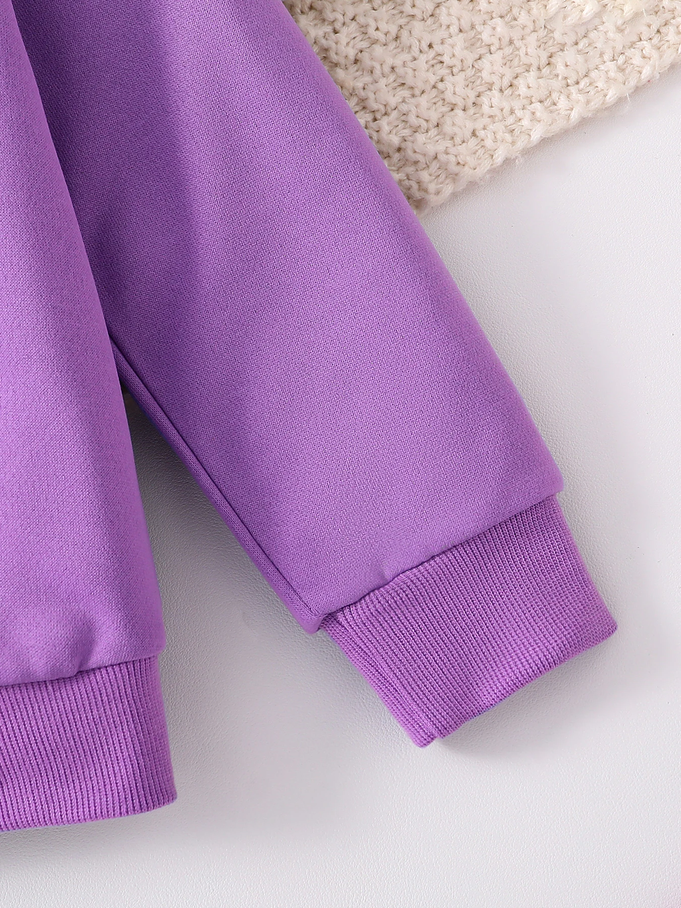 Children’s and Women’s Autumn Fashion Set 2-piece Set Purple Knitted Round Neck Long Sleeve+Multi Color Leopard Pattern Pants