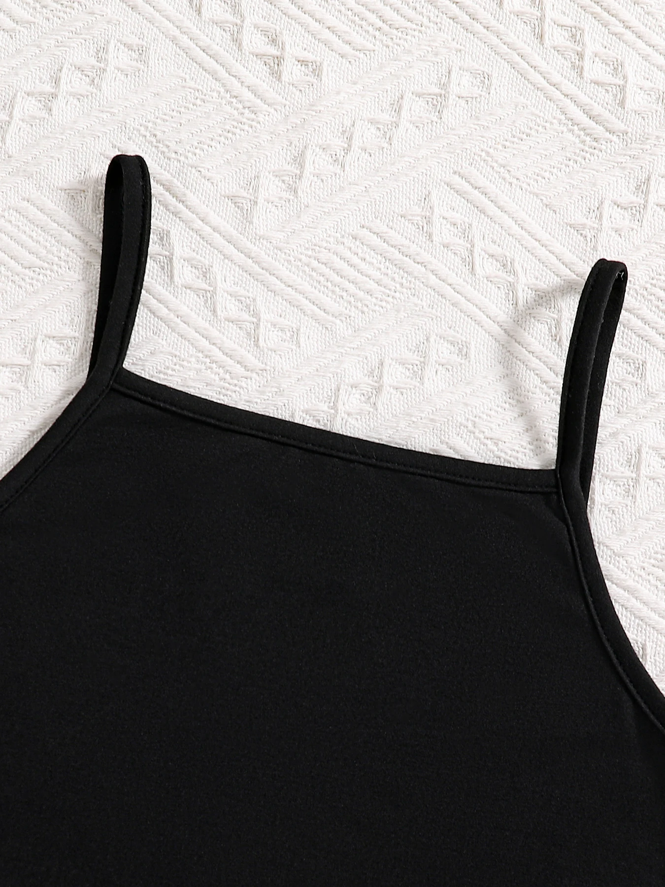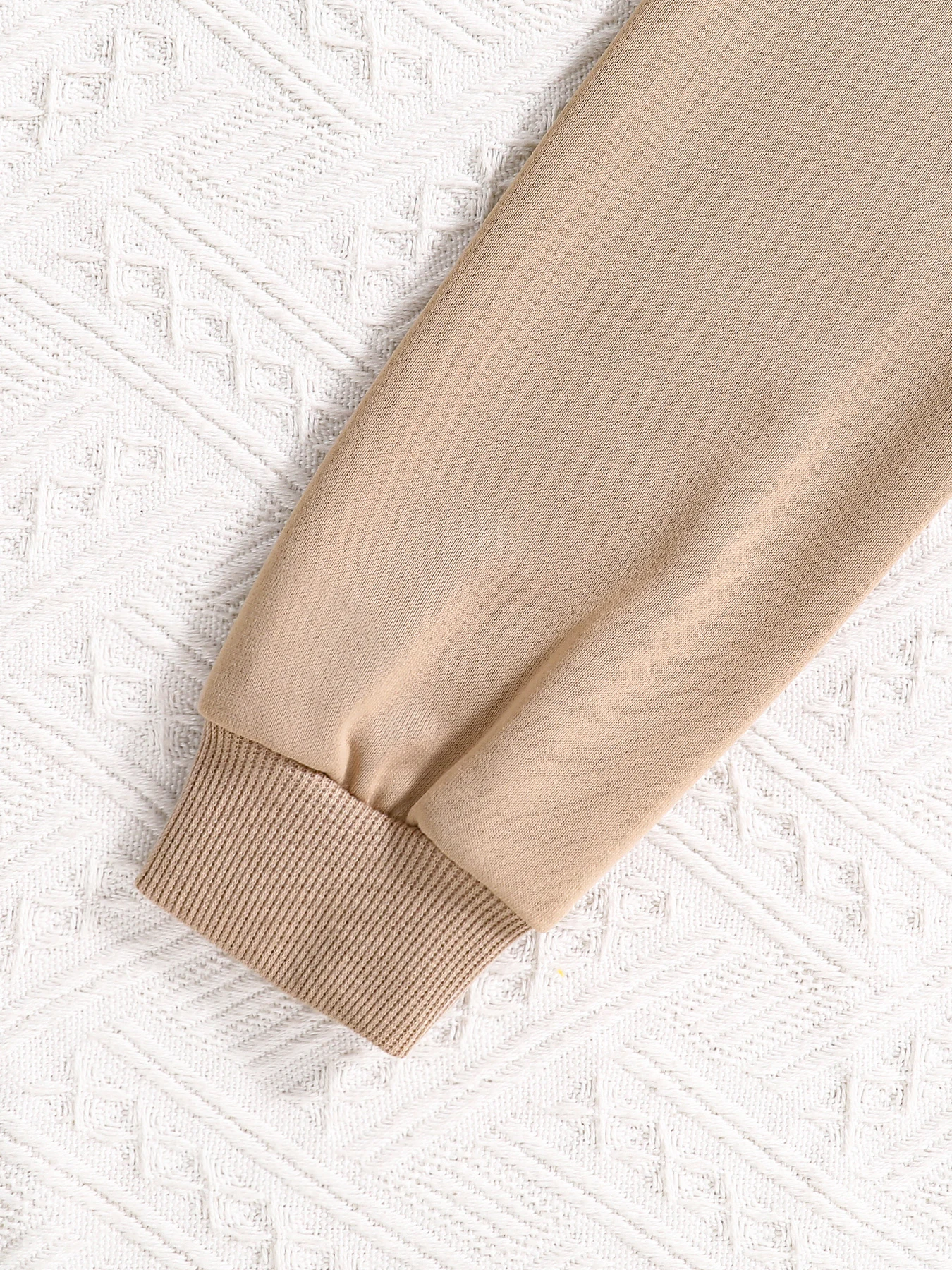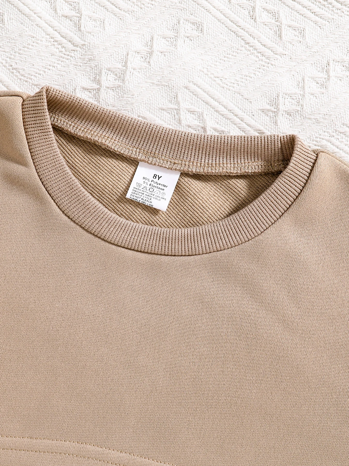Spring and Autumn New Children’s Fashion New Girls’ Set 3-Piece Khaki Round Neck Long Sleeve Short+Black Strap+Checkered Pants